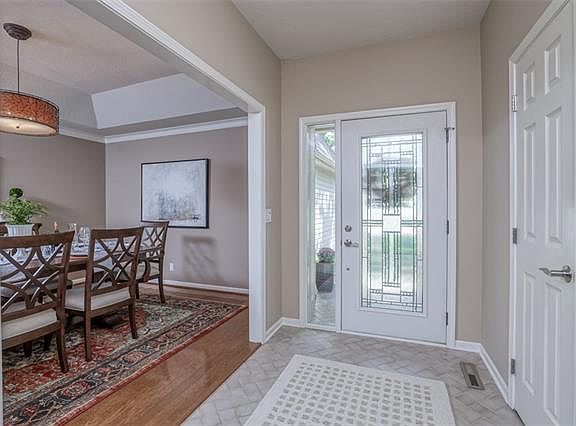 A ten! True ranch with beautiful updates and open floor plan. New paint through-out entire interior of home (including popcorn ceiling removal)! Sparkling Kitchen with shaker cabinets open to Family Room w/fireplace. **Total Lower Level renovation with new ceiling drywall, electrical, paint, carpet and bar/island** Refinished deck with treated lumber, stairs, and iron rails and posts. New garage door. **Smart home updates including nest doorbell, thermostat and smoke/carbon dioxide detector.**. Entry Hall and Dining Room areas. Lovely primary suite with walk-in closet.