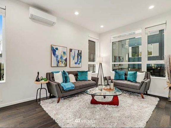 Contemporary design and a thoughtful floor plan elevate this gorgeous townhome to the next level! Inviting entry opens to the lounge area, office/3rd bedroom, and full bath. Upstairs enjoy a light-filled living room surrounded by windows, a modern kitchen with SS appliances and beautiful tile work, a dining area + a powder room. Up one more level find the spacious primary bedroom with ensuite 5 piece bath and abundant closet space + 2nd bedroom. Large rooftop deck perfect for entertaining that boasts Mount Rainier views and gorgeous NW sunsets! Fabulous location just a stroll away from the new light rail station and an easy zip to I-5. Renter is responsible for all utilities, including electricity, water & sewer fee, garbage fee, internet fee, etc. No smoking is allowed.
