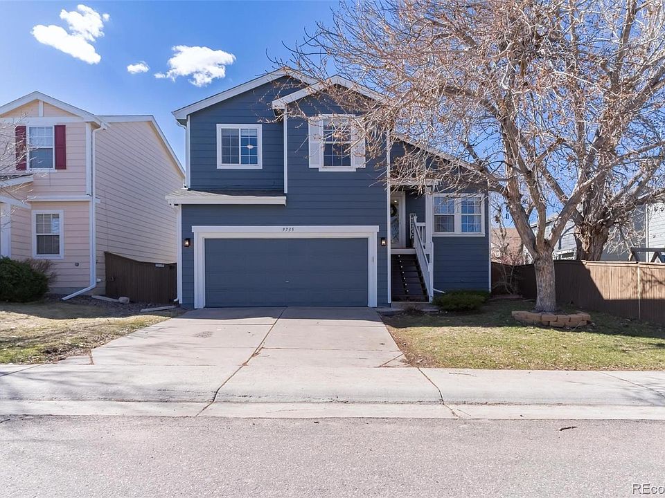 Welcome to your new home at 9735 Saybrook Street, nestled in the heart of Highlands Ranch. This move-in-ready single-family residence features 4 bedrooms, 3 bathrooms, and a 2-car garage. Upon entry, you'll step into the inviting family room currently being used as a dining room with vaulted ceilings, perfect for hosting family meals or intimate gatherings. Continuing through, you'll find the stylish kitchen, boasting a custom island, sleek subway tile backsplash, new dishwasher, and elegant slab granite counters, ideal for culinary enthusiasts and social gatherings alike. Moving upstairs, you'll discover the primary bedroom suite, complete with an ensuite bathroom and walk-in closet, providing a private retreat within your home. Two additional bedrooms and another bathroom offer ample space for family members or guests. Transitioning downstairs, you'll find the spacious living room, filled with natural light and providing seamless access to the backyard deck, offering an indoor-outdoor flow perfect for entertaining or relaxing. Once outside you can enjoy the large backyard, shaded by mature trees which invites tranquility and outdoor activities. A fire pit provides a cozy gathering spot under the stars, and garden boxes await your green thumb's touch. The basement reveals the newly renovated additional bedroom and bathroom, providing extra comfort and privacy for guests or family members. Whether you envision a home office, media room, or work out area, the basement offers ample space to tailor to your lifestyle needs. Conveniently situated across the street from Valor High School, this home ensures easy access to schools, parks, shopping, and dining. Don't miss out on this exceptional opportunity to claim your piece of Highlands Ranch paradise. Schedule your showing today and turn this dream home into your reality!