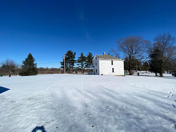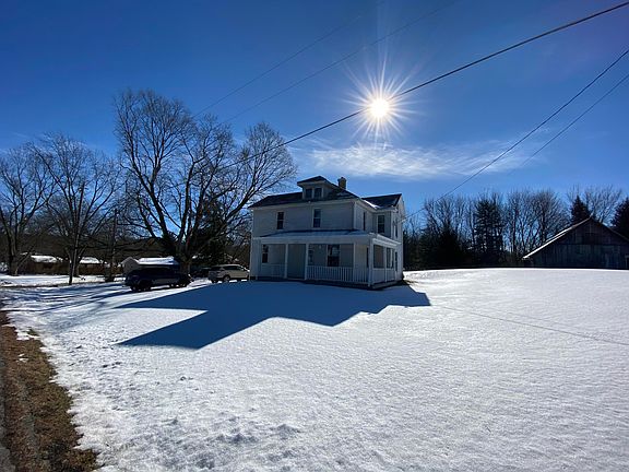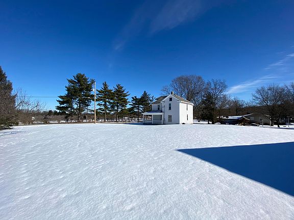 Welcome home, why have farmhouse decor, when you can have a farmhouse to decorate? This home has beautiful hardwood floors in every room and stairs, decorative wood trim throughout, and rustic charm! Enjoy the large front porch with views of the apple orchard and countryside. 4 large bedrooms with closet space and a bonus attic area with a stairway- perfect for an art loft, playroom, man/woman cave, or just storage. Additional farm/storage building sits on the 0.7 acre lot. Laundry is on the first floor, in addition to 1 of the 2 full baths. This farmhouse is just waiting for the finishing touches and a little TLC. Furnace, hot water heater both less than 5 years old, and newer windows.