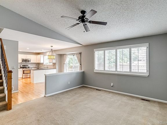 Nestled on a peaceful cul-de-sac in the sought-after Eastridge neighborhood of Highlands Ranch, this inviting home offers a wonderful lifestyle. Step inside to discover an airy and open floor plan accentuated by soaring vaulted ceilings, new iron stair rails and newly refinished hardwood floors. A captivating two-way fireplace seamlessly connects the cozy family room to the sophisticated living room, creating a warm and welcoming ambiance. The updated kitchen boasts a charming eat-in area and provides direct access to the newer deck – an ideal spot for enjoying your morning coffee or hosting evening get-togethers. Recent upgrades include a new microwave, updated countertops, stove, dishwasher, and sink. All appliances are included for your ease. Extend your living space in the fully finished basement, which features a fantastic recreation room, an additional full bathroom, a convenient laundry area, and plenty of storage. Upstairs, the primary suite provides a private retreat with an ensuite full bathroom and a spacious walk-in closet. Two additional well-proportioned bedrooms and a full secondary bathroom offer flexibility for family, guests, or a home office. The newer, expansive back deck serves as an exceptional outdoor living area, perfect for relaxation and entertaining and includes a gas line for barbecue or firepit. Embrace the exceptional Highlands Ranch lifestyle with access to top-rated Douglas County schools, extensive trail systems, and a wealth of community amenities, including multiple pools, pickleball courts, four renowned recreation centers, and numerous parks. Its prime location offers easy access to shopping, dining, and major thoroughfares, making this an unmissable opportunity to experience the best of Colorado living.