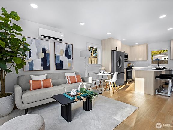 NEW CONSTRUCTION in Greenwood w/ 3 beds/2.25 baths. ASK about our preferred lender 5% interest rates or 0% Down options. Covered entry w/ open floor plan living room, dining room/ kitchen w/ LVP flooring. Kitchen w/ island/ black stainless-steel appliances/ Quartz countertops/ Pot Filler at stove. Half bath/ understairs closet storage. Vaulted ceilings throughout upper floor. Primary bedroom w/ Minisplit/ ensuite double vanity/ ¾ bathroom. 2 add’l beds/ full bath/ laundry room. Direct alley access to parking in front/1-car garage w/ EV Charger/ Electric Hybrid Water Heater Tank. Backyard access in garage to newly hydroseeded grass w/ fenced yard. EREZ floor plan/ design. Home in prime location close to schools, bus, stores/ freeway.