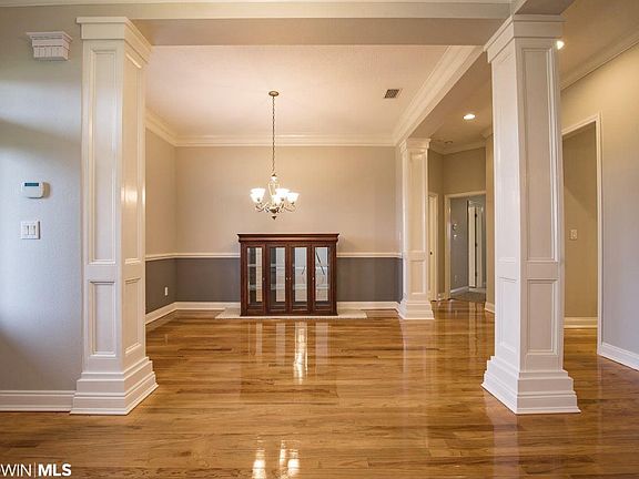 Welcome to your House Made Home! REDUCED PRICE AND SELLERS ARE OFFERING A 1 YEAR HOME WARRANTY WITH OLD REPUBLIC HOME PROTECTION! Ottawa Springs is located across the street from Daphne East Elementary school and walking distance to Trione Park and ball fields. This home is a traditional style 1-story home with all the space you need. Enter your home and find a beautiful foyer and dining room with hardwood floors leading into the kitchen. Office space to the right of the foyers is open and separate at the same time making it a true flex space. The open concept gives ample space for entertaining with granite counter tops, tons of cabinets and storage, serving bar with extra counter and storage space and room for a breakfast table. Living room is over-sized with a separate area by the fireplace that would make a lovely sitting area to read and listen to our inevitable summer-time afternoon showers. Living room features built in surround sound speakers with home entertainment ports. Find beautiful crown molding and decorative columns throughout the home. New carpet in all bedrooms and living room. Huge Master en suite includes oversized walk-in closet, jetted tub, separate shower and is secluded from the rest of the home for added privacy. Other 3 bedrooms are on the East side of home with 2 connected by a convenient Jack-n-Jill bathroom. 3rd bathroom in hall makes the front bedroom a convenient quest suite. Laundry room has more storage by way of upper built-in cabinets going all the way up to the ceiling. 3 car garage is side entry for curb appeal and privacy. Use it for extra storage as well. Back yard is completely fenced in with a covered patio ready for your enjoyment. Property includes sprinkler system, security system, ceiling fans in all bedrooms, fresh paint throughout, can lights and more!! Schedule your private tour today with your favorite agent.