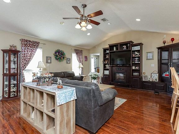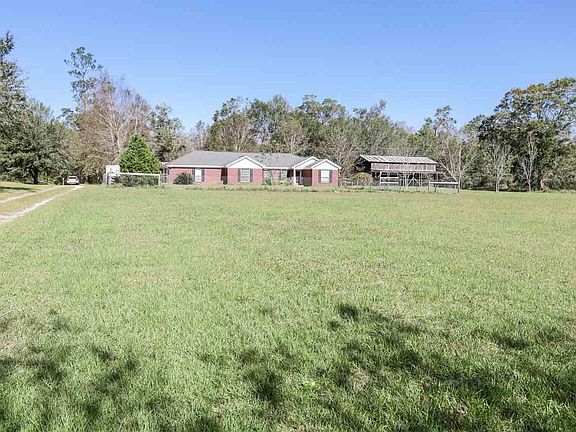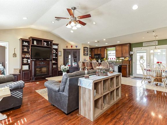 A Breath of Fresh and room to spread out on 2 acres of Country Life! This Beautiful Red Brick Home features an Open Floor Plan. Walk right in through French Doors in back or through the Front Door w/ Glass Storm Door. Built-in Cabinetry includes Fireplace and Glass Cabinets to display books, art and large Flat-Screen TV. The Galley Style Kitchen has Tiled Floors, Black Appliances and a window that looks out to the Quiet Backyard. There are tons of cabinets and Counter-tops for Prepping good eats. The kitchen leads to Large In-door Laundry Room and that leads out to the Oversized 2-Car Garage. This is Open concept living at it's best including a Split Floor-Plan! Master Suite is definitely private w/ En-suite Bathroom - Tiled Floors, Single Bowl Sink, Separate Shower w/ Glass Door, Garden Tub, Recessed Lighting and Large Walk-in Closet. On the opposite side of the home are two more bedrooms and the guest bath. Flooring in the home is Wood-look Laminate and Tile. Out to the back you'll find entertaining space - an Oversized Wood Deck and Gazebo. The Concrete Pad for parking can also be used for the same as it is covered w/ 2 fans and plenty of lighting. Would you like Chickens? There is a chicken coop! Do you want to store your RV or Boat? Oversized Pole Barn is ready and in excellent condition. Come and bring your offer. Fresh Country Air included!