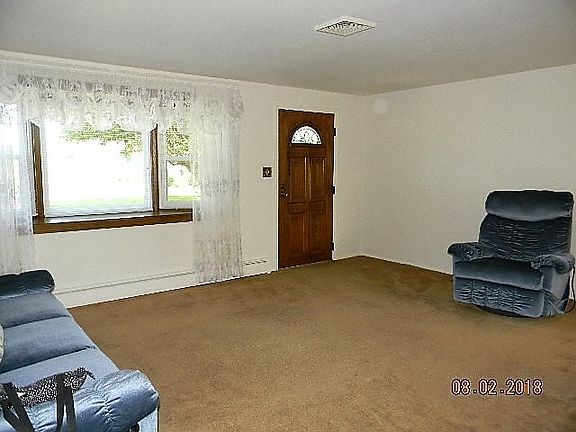 Expand your out door living area at this property. There is a back lot & extra ground on the side of this 3 bedroom ranch. The detached garage is 28 x 32 with heat, electric & pull down stairs for storage area. Room for children, garden, extra parking & pets. The home has fresh paint, new carpet in utility room, updated bathroom, neat, clean & ready to move into! The water heater is new. Patio on the back side of the home. There is a chain link fence around the yard and a wooden fence around the back patio. Drive way in the front & back are black topped. The water softener is an Aqua system that is included in the sale.