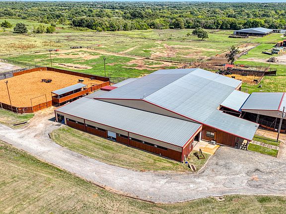 Not only is Valley View Ranch an income-producing equine property, but its commercial opportunities are endless thanks to its prime location in the heart of North Texas Horse Country. This full turnkey facility is designed for serious equestrian operations, complete with a 100x125 covered arena featuring holding pens, stalls, hot walker, wash rack, 2 offices, and more—all under roof. The 115x125 outdoor arena offers a viewing stand, holding pens, and roping boxes, making it ideal for events and training.