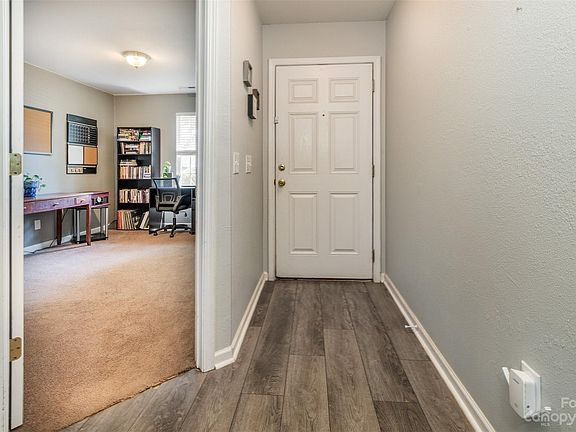 Welcome to this delightful one-level townhome in Harriswood, perfect for downsizing or first-time homebuyers! This home has a low monthly HOA fee & a prime location just minutes from 77 & 485. Step inside to discover a range of recent updates completed within the past two years: Stainless steel appliances, Elegant Vinyl Plank flooring, stylish ceiling fans and light fixtures. Two dedicated parking spaces right at your doorstep provide effortless access to your new home. Heat Pump installed in 2022 & new Roof in 2020. Plus, a lovely trail is just steps away, perfect for outdoor enthusiasts. Within close proximity, is a variety of shops at The Shops at Davis Lake, including a nail salon, Chick-Fil-A, Harris Teeter, Starbucks, and Da Vinci's Pizza! Whether you seek vibrant city life or a cozy retreat, this one-level townhome offers the perfect blend of convenience and comfort. Don't miss the opportunity to make this lovely property your new home!