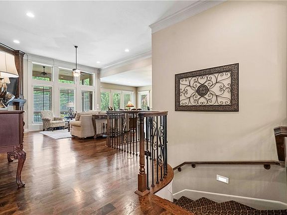 ABSOLUTLEY STUNNING HOME IN CANYON CREEK BY THE LAKE! RARE FIND - PREMIUM PRIVACY YARD!! This home is designed to offer both comfort and elegance. High ceilings, open floor plan and large windows allow for ample natural light creating an airy, spacious feeling throughout the main living areas. Impressive wide plank hickory wood floors! Chefs dream kitchen featuring granite countertops, large center eat-in island, walk in pantry, electric cooktop and built-in oven and microwave. Breakfast nook and formal dining spaces great for entertaining! Convenient laundry off kitchen. Primary Suite showcases en-suite complete with heated floors, dual vanity, corner whirlpool bath, separate shower and generous walk-in closet! Access the screened in porch from the Primary and Breakfast Rooms! 2nd main level bedroom and bathroom. Light and bright walk-out basement includes Family Room (wired for sound), dining area, wet bar, 2 additional bedrooms and 3rd full bath. Still plenty of unfinished space for storage with built-in shelves and bonus shelter space. NEW ROOF, INSULATION AND GUTTERS COMPLETED DEC 2023! Enjoy the views from the back of the home overlooking your outdoor oasis that includes GORGEOUS landscaping, covered patio and screened in porch backing to trees! This space is perfect for hosting gatherings. Fabulous Neighborhood Amenities including swimming pool, basketball court, play areas, walking trails and Mize Lake for fishing & walking trail around the lake. Great location just minutes to shopping, dining and major highways!
