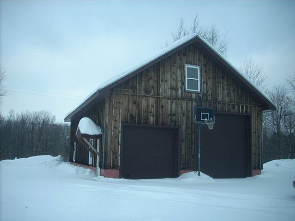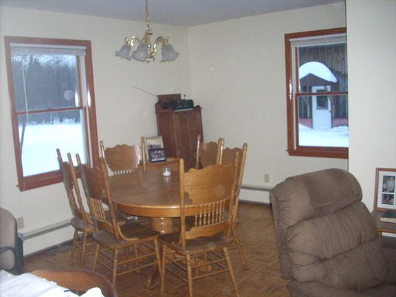 There are an additional bathroom, 12 x 8 tile floor on the second floor and half bath on first floor. 25 year old 2 story home with 5 large bedrms, 2.5 ba and central air. Home sets off the road on a knoll with views of open meadows and wooded land and also overlooks a large 2-3 ac pond. Very private & secluded. Wood furnace in full basement. Large 4 car garage with second story storage. Ideal for small hobby farm or 4 wheeling & hunting. Gravel pit. 25 ac tillable. Must see to appreciate.