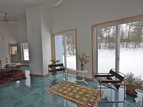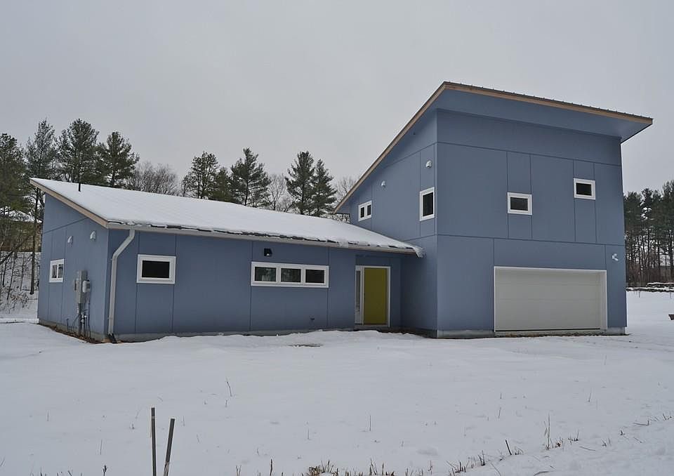 BRAND NEW CONSTRUCTION! The emphasis here is on extreme energy efficiency, natural light, passive solar with a flowing open floor plan perfect for gatherings. The expansive windows brings the outdoors in, there is a concrete floor with epoxy in a beautiful ocean tone, and the walls are efficient High R rated. This four bedroom Contemporary is complete with a first floor bedroom & bath, with three more bedrooms upstairs, including a master bedroom/bath and another full bath with combination tub/shower. Ceiling fans and interesting streamlined sconces add to the modern design. There is a bright and cheerful media space upstairs that could also be a perfect place to relax with a good book. Nice large two-car garage is a plus! Be a part of this cluster of energy efficient, GREEN Homes conveniently located near UMass, vibrant Amherst Town center and area schools.