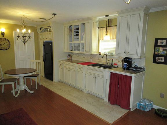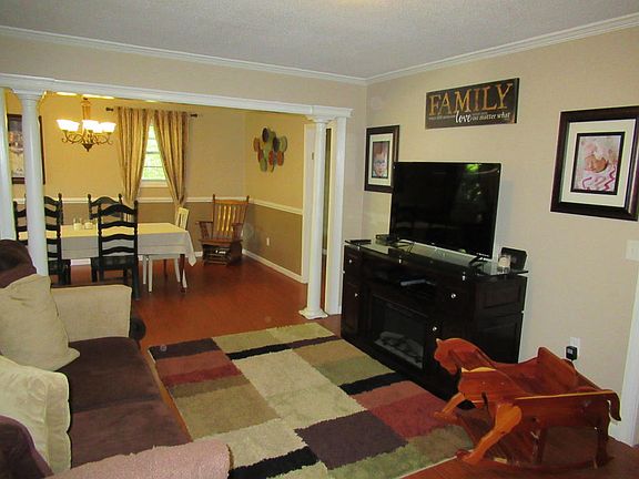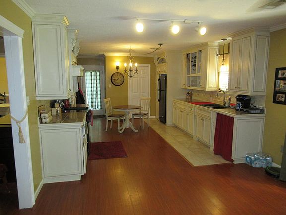Very nice Brick home on 1 acre lot, very private, house has been remodeled , new roof, 3 bedrooms, 2 baths, large open kitchen and den, living room, dining room,laundry, front porch and back porch, 2 big storage buildings, laminate wood flooring , tile in baths. A very pretty home.