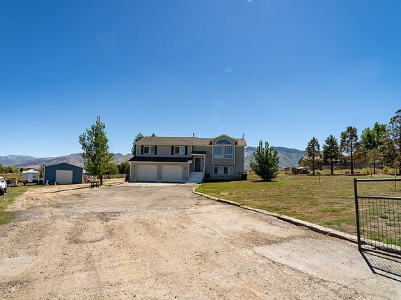 Discover the perfect blend of comfort and tranquility in this 5-bedroom, 3-bathroom split level home. Nestled on a sprawling 1-acre lot, relish awe-inspiring mountain views that adorn the landscape. A 720 sq ft detached shop with power offers endless possibilities. Embrace warmth during winters with the cozy pellet stove. The upper level boasts 3 bedrooms and 2 baths, providing privacy and space. Descend to 2 additional bedrooms and 1 bath on the lower level. A fully fenced yard and black top driveway complete this haven. Your mountain-view oasis awaits! Tons of possibilities for this property. The home is priced to sell! Brand new garage doors and openers just installed. Microwave and life proof vinyl flooring upstairs and downstairs are new. Freshly painted! Driveway was just sealed.