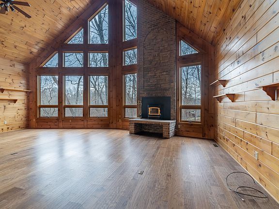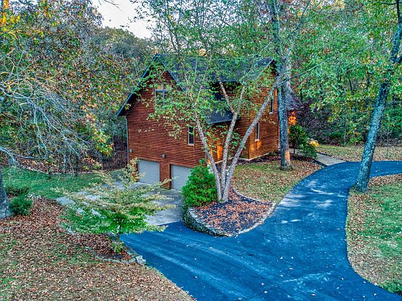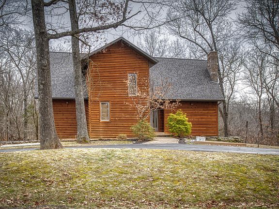What a retreat! Tucked away in a small neighborhood with a country feel is this spacious cabin home on 3 wooded acres with the James River just down the street. The main living area boasts soaring ceilings, a wall of windows looking out into the trees, and a cozy wood-burning fireplace with a stone hearth. Off the open kitchen with all new appliances is a hallway to the main floor bedroom and full bath, laundry and stairs to the basement garage. Upstairs is your own treehouse getaway--behind double doors you'll find the spacious primary bedroom and en suite bath with large jetted tub, and a walk-in closet. The loft space open to the living room below could be used for additional living, working or sleeping space. On the lower level of the home is a large unfinished space offering double garage doors, room to park 4+ cars and other equipment inside, a storm shelter, and the potential to finish it out and expand your living space. Other bonuses include zoned geothermal heat and air and a brand new roof. Relax outside on the fabulous deck this spring as the rhododendrons, redbud tree, and wild dogwoods bloom in the yard and woods. This summer enjoy the neighborhood pool, clubhouse and tennis courts. This home is such a charming refuge, surrounded by nature, and just a quick drive to all the growing city of Nixa has to offer.