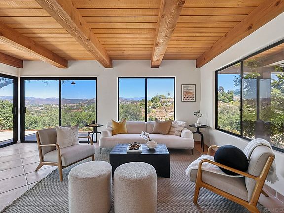 Don’t Miss This Rare Opportunity! This spectacular, solar-powered, 4.4-acre gated horse property blends equestrian amenities, luxurious living, and privacy all just moments from downtown Fallbrook. Enjoy panoramic VIEWS from the expansive deck, patio, and nearly every room in the home. The main residence offers 3 bedrooms and 2 bathrooms with a warm, inviting floor plan. The living room’s picture windows and cozy fireplace create a tranquil gathering space, while the chef’s kitchen - featuring custom cabinetry, high-end appliances, and an eat-in dining nook - creates a cozy space for easy entertaining. Upstairs, the primary suite is a true sanctuary with a private fireplace, expansive walk-in closet, spa-inspired bath, and a large deck overlooking rolling hills. For horse lovers, this property is fully equipped with a well-designed barn featuring four stalls (including a foaling stall), tack room, wash rack, and spacious arena. Three separate paddocks allow horses to roam, and thick rubber mats, plus hot and cold water in the barn, make daily care convenient. An attached studio/ADU with bath and kitchen provides ideal accommodations for guests, staff, or even a private office. With 33 owned solar panels (paid in full), this estate offers sustainability and significant savings. Additional highlights include two storage sheds, a spacious RV carport, and thoughtful design that ensures comfort and functionality at every turn. Whether you’re relaxing fireside, hosting guests, or tending to your horses, this property delivers the perfect balance of modern convenience and rural tranquility. All of this is located in a highly desirable, peaceful setting - just a short drive or stroll to Fallbrook’s shops, dining, and local attractions. Properties like this don’t come along often. Schedule your tour today and experience the privacy, lifestyle, and value waiting for you!