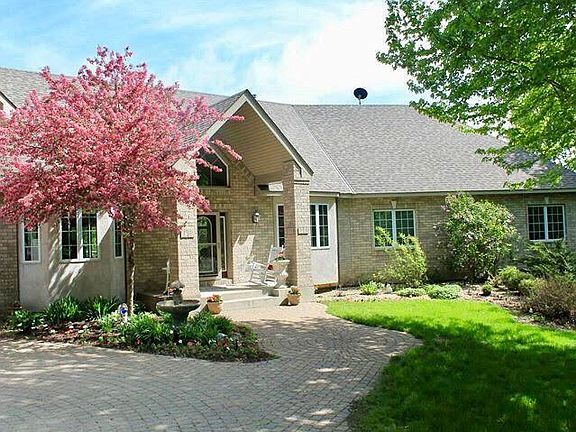 Luxurious rambler on 5+ private acres of woods-pond-wildlife yet minutes to shopping, schools, interstate and more. Stunning 2700 sf open-concept main level w/double-vaulted ceiling, 11 ft stone kitchen island and a huge walk in pantry. 3 bedrooms and 3 baths on the main level including lush master suite with water views. Main floor office with gas burning fireplace. Lodge-inspired walkout lower level w/wet bar and stone fireplace. 2 more bedrooms and baths in the lower level. Another office & in-floor heat in the lower level! Vaulted bonus room above the garage is a perfect canvas for office/studio/man cave. Backyard waterfall/stream retreat w/perennial gardens. Maintenance free exterior, newer roof and Secret rooms. So much to see here to appreciate.