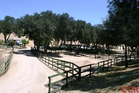 This idyllic, peaceful country ranch has a lovely 3-bdrm home that rests in a wooded (oak) valley. Many fenced animal pens and corrals (including a riding arena) and many useful outbuildings (barn, sheds, gazebo, etc.) dot the wooded landscape. Seller says there are two other good and permitable building sites--one more in the valley and one at the hilltop at the back of the property with panoramic hilltop views--one additional home and a guest quarters are permitable (please confirm with county). This single level home has many upgrades--hardwood floors, stone tile counters, oak cabinets, swamp cooler (central AC too), pellet stove (central heating too), a front porch with a view of the corrals, trees, and road beyond--and a large patio that peacefully sits under a large oak just off the master bedroom and kitchen/dining area (opposite the gazebo). This country ranch home has been loved and very well maintained! Experience its peaceful country ambience!