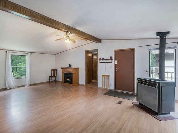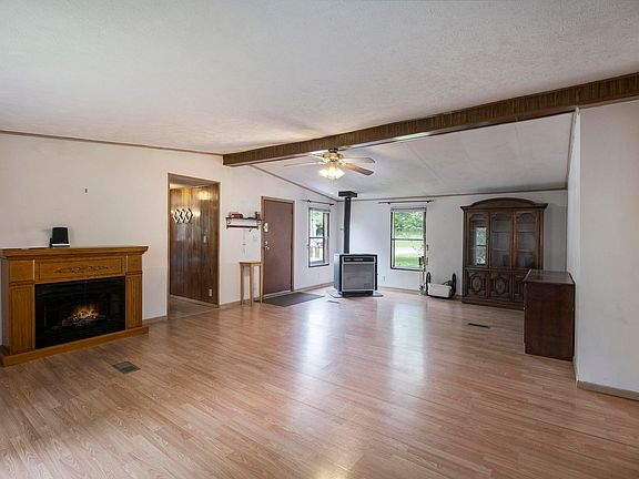This 3 bed, 2 bath manufactured home sits on 2 wooded acres. Spacious kitchen with oak cabinets, a detached garage/pole barn, and a large deck located on the back of the house, makes this house a perfect fit for any buyer. Don't miss your chance to view this property today! Property is being sold as-is.