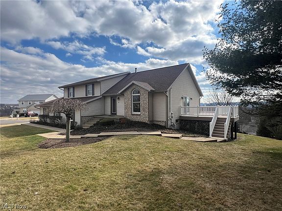 Fantastic home with scenic views of the Wilkshire Valley! Spacious 4 bedroom, 3 bath brick and vinyl home. Open floor plan featuring a corner gas fireplace in the living room with cathedral ceilings leading into the dining room. Tastefully updated kitchen with freshly painted cabinets, new Quartz counters (2023) and island breakfast bar. 2 sets of French doors lead from the dining room & living room to the $30,000, 60 X 12 wrap around vinyl composite deck providing panoramic valley views and plenty of space to entertain. The lower level bedroom features a private bath with whirlpool tub, separate shower and walk in closet, ideal for an in-law suite. The lower level rec room boasts new sliding glass doors to the covered patio. Attached storage area and 2 car attached garage! Many updates completed including new roof in 2019 and new furnace in 2018. Seller is offering a $500 floor covering allowance for the bedroom. Freezer in lower level stays. Exclude washer and dryer. This home is a must see and offers immediate possession. Don't miss this one!