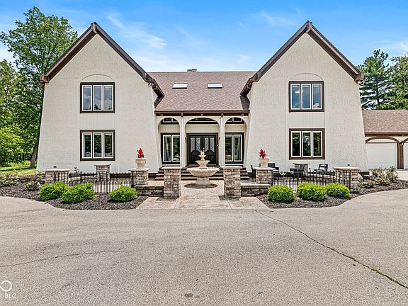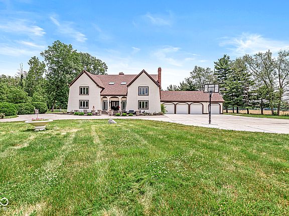5 acre estate in Carmel at the end of a private drive. Breathtaking great room with soaring ceilings, impressive stone fireplace, and large skylights. Main level also includes 2 more living spaces, a wet bar, a formal dining room, eat-in kitchen, sunroom, and large laundry room. Upstairs includes 4 bedrooms and an open loft with beautiful wood details and access to a second, upper level sunroom, which overlooks the backyard. You also have a finished, walk-out basement with a second wet bar, a bedroom and full bath, and tons of room for entertaining guests. The property itself sits on 5 acres and includes a large back deck, a pool, a creek, and 2 storage sheds. There is room for everyone at this gorgeous home- the unique and special details of this property must be seen in person!