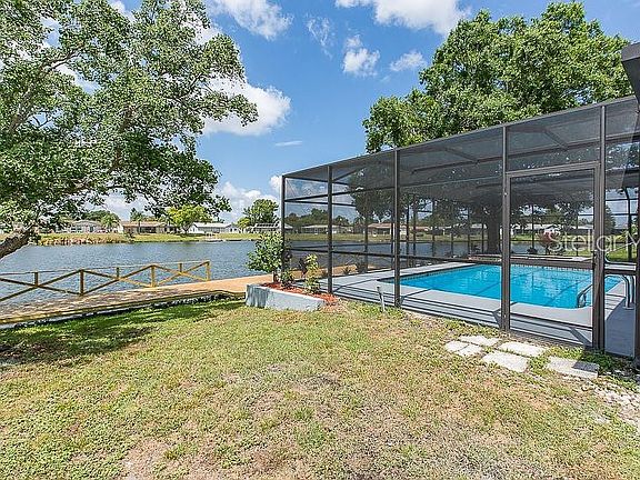 FSBO. Get ready for this spectacular completely remodeled waterfront 3 bedroom 2 bath pool home fit for a king and his family. When we say completely remodeled we mean COMPLETELY! The entire kitchen was transformed into an amazing open space with the house floor plan that makes a great room space built for entertaining. The beautiful laminate floors run through the entire home except for the bathrooms which are adorned with porcelain tile. Custom cabinets in the kitchen and bathrooms are covered in beautiful granite. The center island is perfect for entertaining or feeding the family. The backyard is a quiet oasis with a large gunite pool and spill over spa with a large deck area and covered patio. Both of the flat roofs are new as well as the AC system so no maintenance concerns. Come see this stunning home and bring your family
