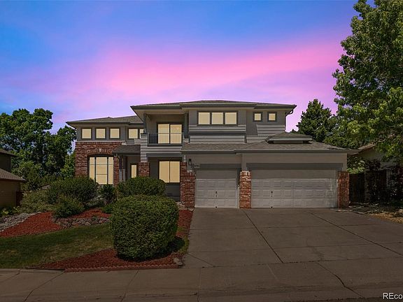 Welcome to this stunning residence in the coveted Eastridge community of Highlands Ranch Colorado, where luxurious living meets breathtaking mountain panoramas. This expansive, 4-bedroom, 4-bathroom home spans approximately 4,124 square feet of exquisitely designed space, situated on nearly a quarter-acre lot. You will be captivated by the unobstructed views of the front range stretching from Pikes Peak to Longs Peak, providing a picturesque backdrop that is truly second to none. The home’s prime location, backing to Highland Heritage Park, offers the unique advantage of enjoying annual fireworks displays from the comfort of your own back patio. Step inside to discover a home that blends sophistication with comfort. The main floor features a home office & striking living areas, characterized by tall ceilings & walls filled with windows that embrace the natural light & mountain scenery. Two gas fireplaces add warmth & ambiance to the living spaces—an inviting retreat during Colorado’s cooler months. Entertaining & culinary endeavors are a delight in the chef-grade eat-in kitchen, equipped with granite countertops, stainless steel appliances, newer flooring, & a built-in desk space—perfect for managing household tasks. The kitchen flows seamlessly into the spacious, formal dining and living area, ideal for gathering with family and friends. The primary suite is a sanctuary on its own, complete with French doors leading to a new private Trex deck—a serene spot to start the day with a sunrise coffee or unwind in the evening with a glass of wine. The suite also features a luxurious 5-piece bath, make-up counter and a large walk-in closet. Additionally, two upstairs bedrooms share a private balcony, offering another vantage point of the neighborhood. The fully finished basement is impressively designed as an in-law studio, complete with its own kitchen, a cozy fireplace, a 3/4 bathroom with a large steam shower, and a stackable washer/dryer. Ask about a 1-0 Rate Buydown!