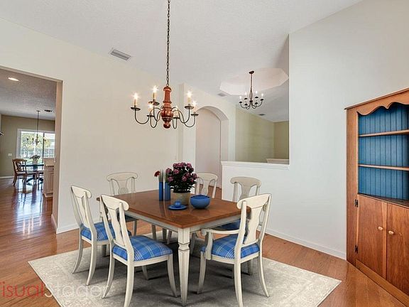 This one-story home with lush landscaping and an inviting front porch offers eye catching curb appeal. Pass through the double door entrance of this bright and airy 5 bedroom, 3.5 bathroom home to discover a formal living room, formal dining room, chef's kitchen and a family room. The spacious family room leads to the screened enclosed patio with a custom pool and serene lake view. The open concept gourmet kitchen features classic white cabinets, a menu bar and high hat lighting. The master suite boasts a tray ceiling, dual sinks, a framed mirror, Jacuzzi tub and a walk-in shower. Host house guests with a unique mother-in-law suite with a full kitchen and a private entrance. Stunning wood flooring, neutral decor and an abundance of natural light complete this spectacular home.