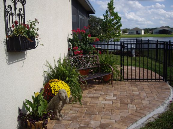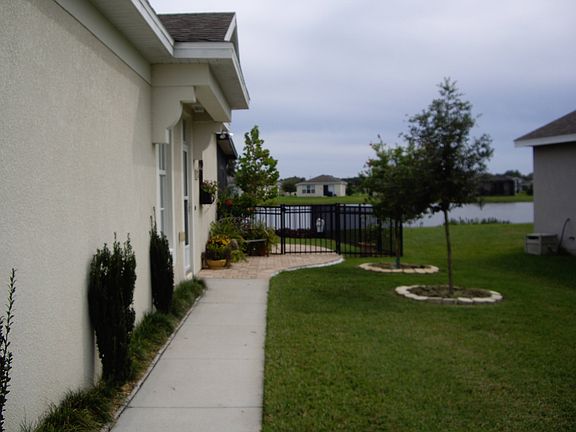 LOWER TAXES! Owner has paid off Bond portion of CDD ($800 X 15 years of savings on your tax bill.)Compare! This is an absolutely immaculate home on one of the most beautiful Lake lots in Harrison Ranch. Since Seller purchased in March of 2013, added a 27X10 pavered and screened lanai with a pavered walkway to the front door ($10,000,) plantation shutters throughout ($4000,) repainted the interior, replaced carpeting in the guest bedrooms and added landscaping. This split bedroom home features a fenced backyard and great room plan with the kitchen and dining area open to the family room with views of the Lake through sliding doors. Ceramic tile flooring throughout entry, kitchen, hallways and bathrooms. Upgraded bamboo laminate in family room and Master Bedroom. Kitchen has a generous amount of wood cabinets, GE appliances, dining nook and breakfast bar. 2 guest bedrooms are in front of home (one with direct entry to guest bathroom.) Laundry room is also in this area of home next to garage access. Master Bedroom in rear of home off of Family room with Lake Views from numerous windows. En-suite master bath includes shower stall and Master Suite is completed with generous sized walk-in closet. This home also has upgraded light fixtures and fans. All this and a community with 5.5 miles of walking trails, a recreation center with tennis courts, playground, soccer and baseball field, resort style pool, fitness center, pool table / party room, library and more. Easy access to Shopping, Chow and nearby airports!