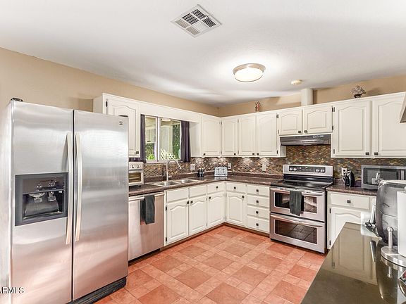 Welcome to your beautiful 3 bedroom, 2 bathroom home with Superstition Mountain views! Eat in Kitchen with stainless steel appliances, double oven, white cabinetry and tile backsplash opens to private backyard. Oversized primary suite with walk in closet and shower/tub combo. Gorgeous wrought iron door and paver patio to take in your mountain views. Backyard with low maintenance desert landscaping, large covered patio, and landscape lighting. RV parking and RV gate, no HOA neighborhood.