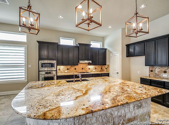 Awesome one story with 3 bedrooms and 3-1/2 baths. This home has upgrades galore! Ceramic tile throughout, no carpet. Beautiful granite kitchen countertops and an island with 10 feet of breakfast bar. Gas cooktop, too. Each bedroom has its own ensuite bathroom. Wood plantation shutters on most windows. Study with a built-in desk, recessed lighting, ceiling fans, motorized shades on back windows leading out to the large covered patio with a ceiling fan. Two car garage with extra overhead storage.