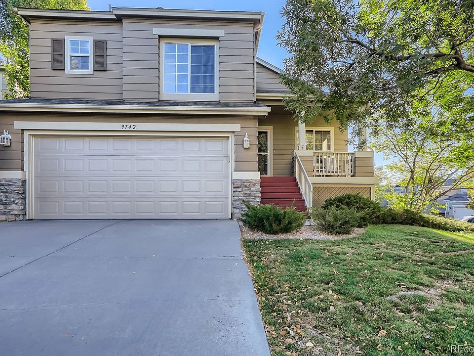 Welcome to your new beautiful home located on a corner lot in the desirable Eastridge neighborhood! Enjoy the bright kitchen that offers newer stainless steel appliances with an eating space. Relax on the gorgeous front porch or back patio with trees and bushes surrounding the fence line. The roomy primary suite boasts an en-suite with a soaking tub, as well as dual closets. The additional bedrooms share an adjoining beautiful full bath with new tile. The living room has a gas fireplace, which will be wonderful for those cold winter nights. The unfinished basement offers a lot of natural light and the opportunity to finish it, meeting your desires and includes a bath rough-in. The house is freshly painted with neutral colors, hardwood floors on the main and lower level and carpet on the upper level, making the bedrooms warm and cozy. This spectacular location is minutes from multiple Recreation Centers that host sporting events, offer pools, weight and cardio fitness along with a dance studio and so much more, not to mention free concerts during the summer and even fireworks. The HOA provides membership access to the Rec Centers. West Big Dry Creek trail is just a few blocks away from the front door, which connects to Big Dry Creek Park and Heritage Park which offer miles and miles of trails/walking paths throughout the popular Highlands Ranch area. Douglas County offers the top ranked public schools which are minutes from this fantastic location!