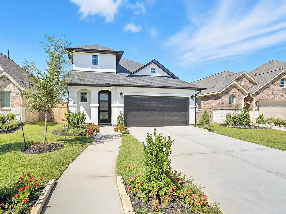 Two-story ceiling in foyer and great room. Home offers two bedrooms down and two up. The primary suite has dual sinks, a shower, and a separate soaking tub. The second bedroom down has its own full bath. The kitchen is equipped with a built-in Wi-Fi oven and 36 36-inch five-burner gas stove top. The entire home has smart home capabilities and comes with a built-in Wi-Fi router that will help you connect all the smart features of your Shea home. We are building in front of Sienna, just 2 miles from Highway 6 in the village of Bees Crossing. Shea Homes was awarded Builder of the Year 2024 from the Greater Houston Builder Association.