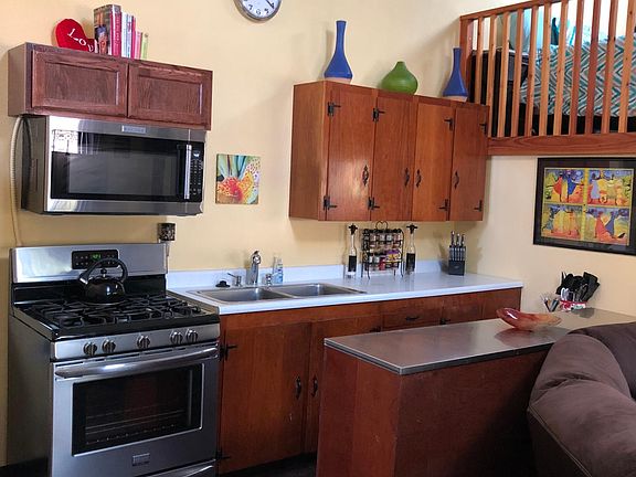 Vaulted ceilings and skylights brighten the space to make it feel warm and inviting. The 9' x 10' bedroom has a loft above it which can be used for a second bedroom, art space, or whatever! The kitchen has new stainless-steel appliances -- refrigerator with built-in ice maker and cold filtered water, gas stove, built-in microwave and dishwasher. There is a high efficiency washer and dryer in the apartment. There is a wood burning stove with some wood provided. The patio doors open to the fenced backyard with patio, garden, fire pit and grill. The apartment shares one wall of the house and the backyard with us, the friendly owners and our two dogs. Plenty of on street parking. Owner pays heating/air conditioning, electricity, water/sewer, garbage/recycling, high speed wi-fi, cable (includes all sports channels, movies), DVR