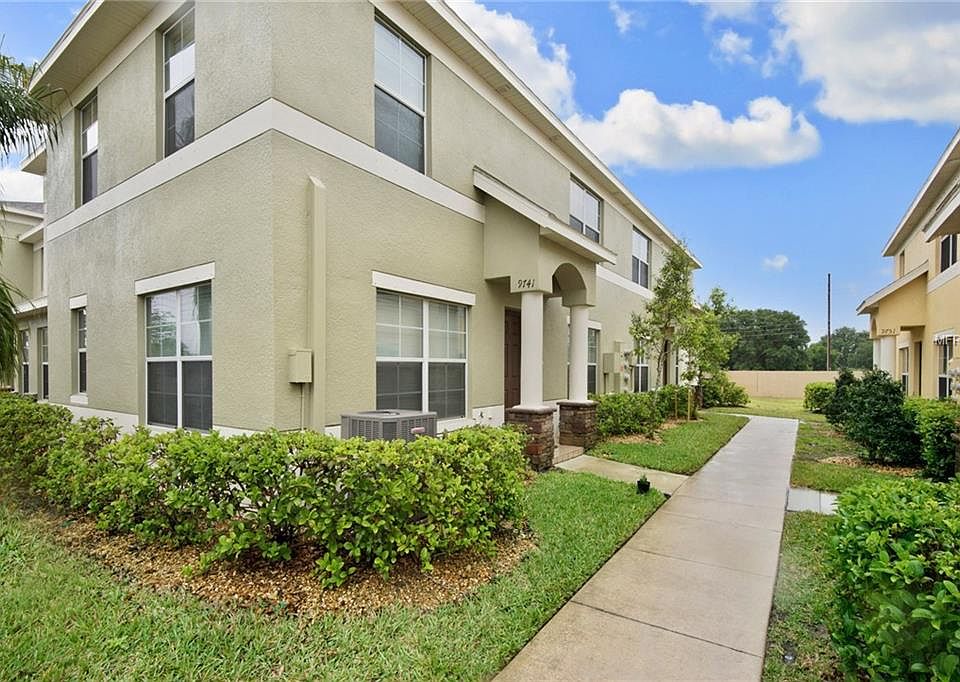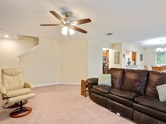 Sought After Community Thousand Oaks ! Like NEW, this 2015 End (Rear Corner) Townhome has been gently treated and is PRISTINE inside & Freshly Painted Outside! As you walk in you'll note the light & bright atmosphere of this home, light neutral colors will work with any palate. The Great room style floor plan maximizes the downstairs space while the Large Dining area next to the kitchen supports entertaining. The kitchen offers Luxurious Staggered Cabinets with Crown, granite Counters and Stainless appliances. Half bath downstairs with pedestal sink for guest use, upstairs you'll find 3 ample sized bedrooms, 2 baths w/ upgraded Granite Vanities and a full sized laundry area- Washer & Dryer stay. Bedrooms feature ceiling fans and spacious closets. The secondary bedrooms have a Great View of the Golf Course across the street! The Master has a full Bathroom w Soaking Tub/shower combo. Other great features include Double Pained Low- E windows, Blinds throughout- Hurricane shutters, Tubes in the wall Pest Defense & High Tech Alarm system the syncs to your phone w/ monthly svc. All of this in this with a low monthly fee in the heart of Trinity, easy access to shopping, New Hospital, Dining & Beaches! Call Today!
