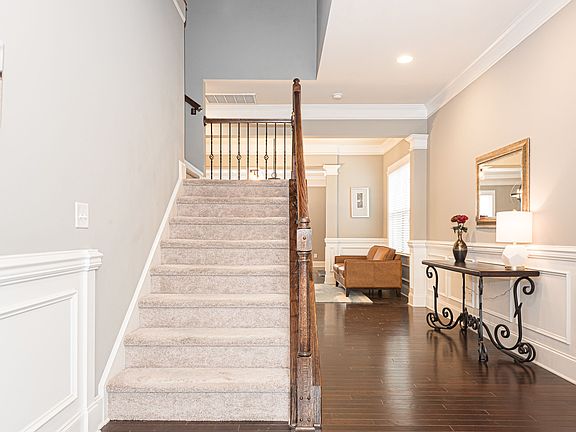 Home is Vacant and ready to show! Stunning 3 Bedroom, 3.5 Bathroom Full Brick home in the desirable Abingdon Subdivision. The main level has an amazing open floor plan, high ceilings and crown molding throughout. Completely upgraded kitchen complete with Granite counters, Stainless Steel Appliances, Sit at Kitchen Island, Pantry and tons of cabinet and counter space. The upper floor is home to two generously sized secondary bedrooms each with their own bathroom. You are going to love the huge Master Suite complete with 2 walk-in closets, sitting area, covered balcony, dual vanities and garden tub! Do not miss the fenced in back yard! Just minutes from shopping, restaurants and easy access to I 485!
