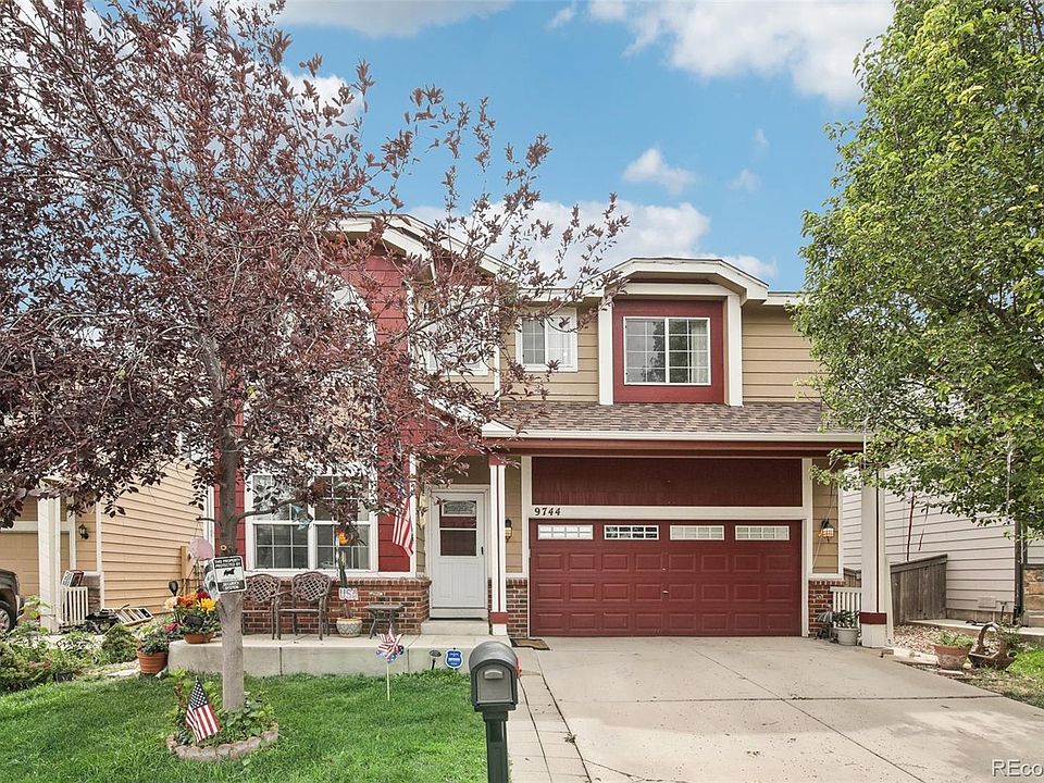 Welcome to 9744 Joliet Circle, nestled in the highly sought-after Eagle Creek neighborhood! From the moment you step inside, you’ll be WOWed by the soaring vaulted ceilings and the sun-drenched entryway, featuring elegant tile flooring and a cozy gas fireplace. The seamless flow from the kitchen into the living room creates an inviting and spacious atmosphere, perfect for both relaxation and entertaining. Upstairs, discover three generously sized bedrooms, each spacious enough to accommodate a king-sized bed. The freshly painted primary suite boasts a walk-in closet and a beautifully updated en-suite bath, offering a private retreat within your home. The basement adds even more versatility, with partially finished space that includes a full bathroom, 4th bedroom, laundry room, and ample storage. You CANNOT miss the incredible yard backing to the neighborhood greenbelt, playground and park! This lot offers the rare opportunity to have no neighbors directly behind you! 9744 Joliet Circle is brimming with recent upgrades, including a brand-NEW Class 4 Roof, upgraded bathroom flooring, reverse osmosis water filtration system, new French doors into the backyard and newer Water Heater, Furnace, and AC—all within the last five years. Don’t miss the chance to own this exceptional property!
