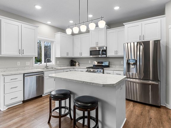 This beautiful like-new home built was built in 2022 and sits in a quiet neighborhood, backing up to woods and wetlands to provide privacy. This home is a garage lovers dream, with a large, heated/insulated garage, oversized garage doors and a floor drain! This home also features a fenced in yard, large bedrooms, and LVP flooring throughout the entry, dining room and kitchen on the main level. This one won't last long, don't miss out!