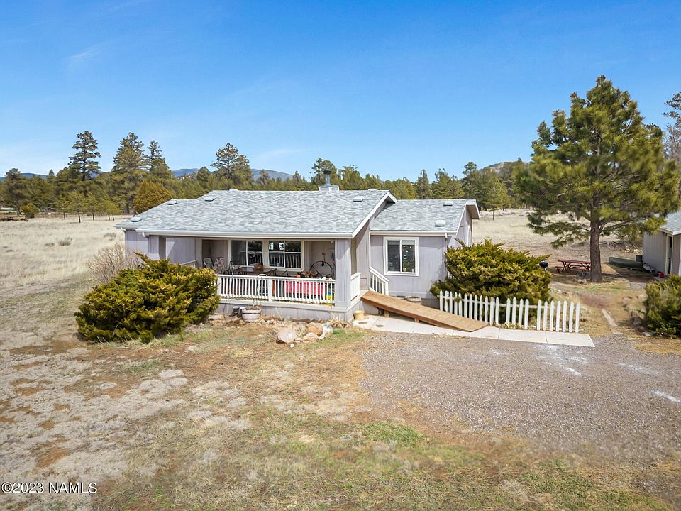 5 acres of quite property that backs the forest with amazing views of the Peaks. This cute 3 bedroom, 2 bath home with a 2 car detached garage is where you'll find peace. Ride you horse, atv's or just take long walks and enjoy nature.