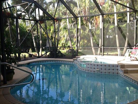 Absolutely beautiful pool home with low HOA Fees.. Vaulted ceilings*Living & family room areas tiled..parquet floors in bedrooms*granite countertops, upgraded bathrooms, neutral colors thru-out home*backyard very private with mature trees*beautifully landscaped with large palm trees* tropical paradise*large screened patio overlooking pool*come & fall in love because this home is stunning*all terms subject to third party approval*ceiling fan in family room does not convey
