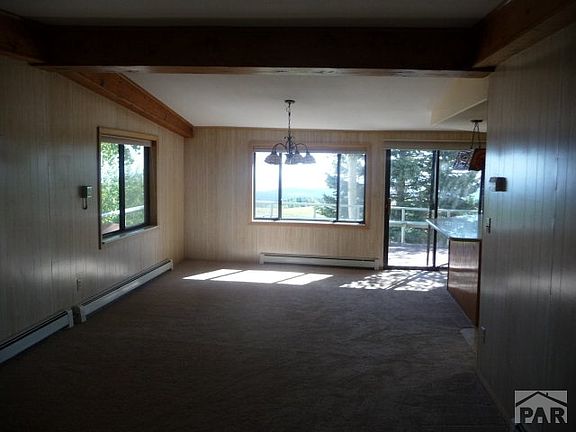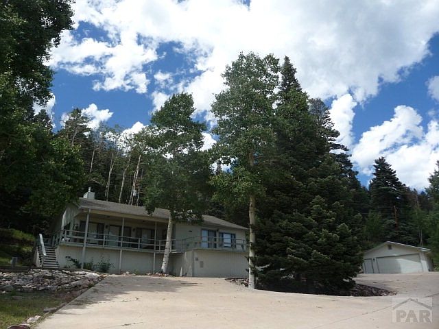 Year around ranch style home with 3 bedrooms and 2 baths. New carpet and paint. Gourmet kitchen with Wolf Range and Corian countertops. Serving bar and formal dining room. Two gas fireplaces, one in the master bedroom. Lots of windows to enjoy the spectacular views (it's called Grandview!). Sunrises are unbelievable! Watch the horses play in the pasture as you relax on the huge covered deck or the grassy elevated yard under giant blue spruce. Reliable private well with 2 underground storage tanks. Backup diesel generator. Oversized detached 2 car garage. RV parking and concrete driveway. Storage shed and partial basement. Two acres of mountain land. Only 45 minutes from Pueblo, CO.