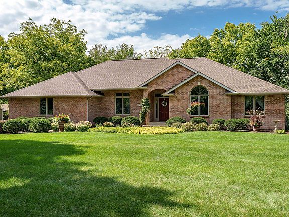 Looking for that beautiful River Home, high and dry, featuring 150 feet of shoreline, privacy and beautiful views, this is the one, located on over 1.5 acres on a private drive. This all-brick, full walkout features over 3000 sq. ft of living space. The professionally landscaped setting is very inviting with a brick paver walkway leading to the nice, roomy porch. The entry way opens to the living room, dining room, and office/den featuring hardwood floors, a picture window and French Doors providing privacy. The living room boasts 10 ft. ceiling, a full brick gas fireplace, and large windows with views of the river. The formal dining room features crown molding and a large picture window offering natural light and serene views. The eat-in kitchen features custom oak cabinets with pullouts, crown molding, a pantry, and beautiful views. The kitchen leads to a large, enclosed porch. Rounding out the main floor, you will find 2 bedrooms: the primary ensuite featuring corner windows, a walk-in and regular closet, bathroom with skylight, custom oak vanity with double sinks, and a make-up vanity, a soaker tub and a separate shower. The lower level features a full walkout, the third bedroom, and a large family room featuring another full brick gas fireplace, and double glass doors to the stone patio and stone walkway with beautiful river views. The lower level also provides a lot of storage and/or room for additional expansion.