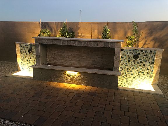 Welcome to your gorgeous new home in highly desired Cadence, a one-of-a-kind master-panned community in Mesa's Gateway corridor. 3 bed+Den/Office, 2 baths + fabulous backyard w/no-one behind! Ever! Remarkable kitchen marries luxury with functionality: storage galore + massive oversized island that easily seats five. Granite counters, SS Appliances, double oven. Your oversized glass sliding door leads to paved covered patio + breathtaking water feature w/gas fireplace. Artificial turf makes this fabulous backyard entertainment friendly + stress free. Main bathroom w/oversized shower + garden tub + double vanity + huge walk-in closet. Main bedroom w/upgraded bay windows. Relish privacy in Den/Office thanks to gorgeous, colossal custom-built barn door. This 2019 single-level home has a 3 car