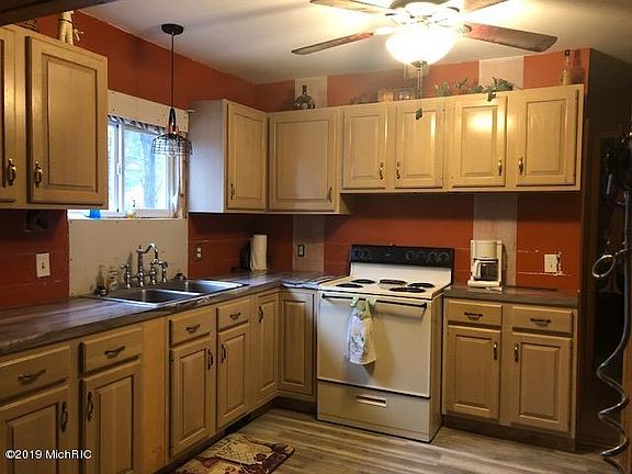 Unplug to the banks of Cool Creek. Ideal setting for this 3 Bedroom, 1 Bath cabin/year round home on a peninsula setting a stones throw away from the waters edge. Some updating has already been started, updated electrical, plumbing, kitchen, bath and master bedroom. Large open living area with double sliders overlooking the meandering stream features a pellet stove making this a perfect Northern Michigan setting. Washer/Dryer hook-up for extra convenience. A little additional finish work and this will be the getaway you will never want to leave.