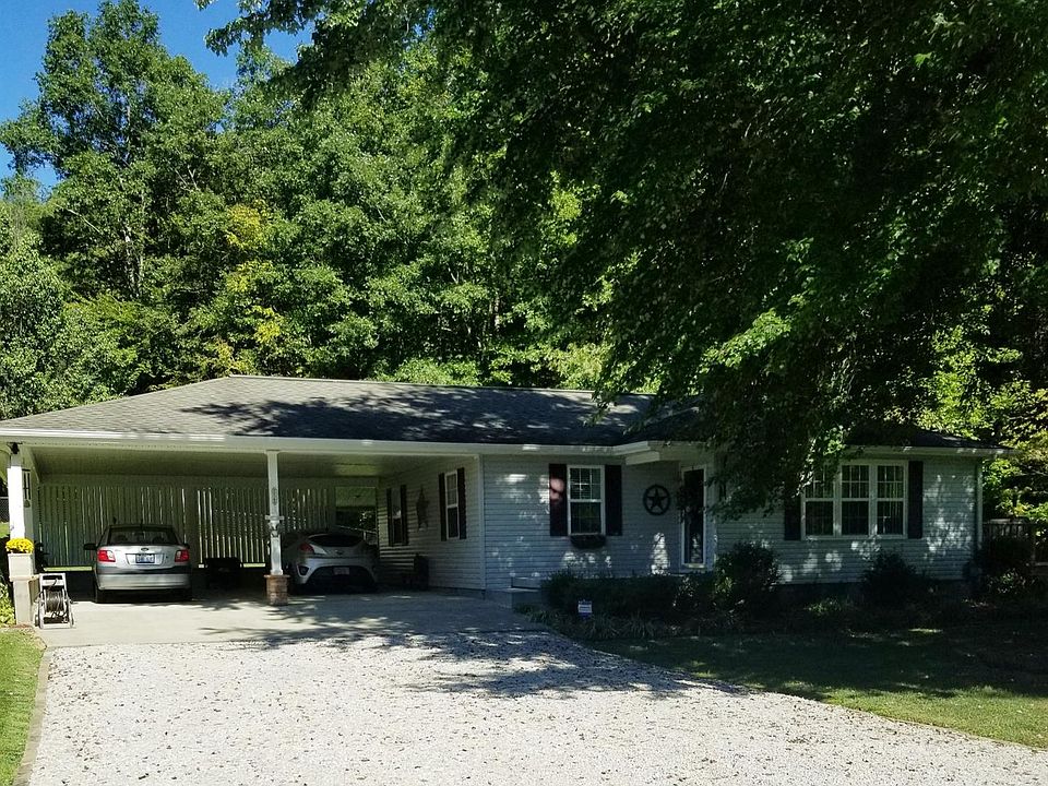 You will find peace & serenity in this rural setting teeming with an abundance of wildlife. Spend the hot afternoon or evenings cooling off in the pool or setting on the deck enjoying the beautiful landscaping. This 2 bedroom, 1 bath ranch style home is a must see. This home sets on approximately 48 acres and is divided by KY Hwy 1304 giving frontage on both sides to KY Hwy 1304. This property also comes with a barn with 2 horse stables and a tack shop. Small pond located on property.