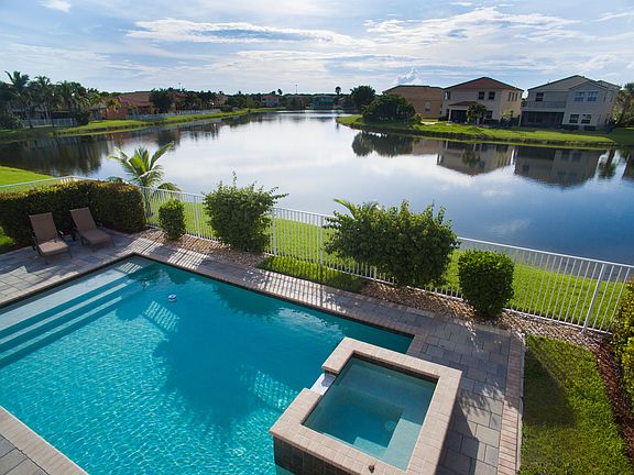 Fabulous pool home with tranquil lake views. 4 bedrooms with den off of the master that can easily be converted to 5th bedroom. 2 of the large bedrooms have a balcony that overlook the beautiful large shade trees out front. Master suite includes double walk-in closets, jetted soaker tub, walk-in shower, double vanities and sinks. Spacious kitchen with island, double oven and large walk-in pantry. Home is hard wired for plug-in generator. Accordion hurricane shutter on second story, complete panels downstairs. Heated pool and spa, fenced yard. Auto sprinkler with new filtration system runs off of lake water. New hot water tank and pool pump. All this