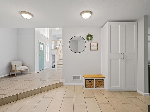 Live in the serenity of peaceful country evenings just minutes from convenient shopping in this stunning 4-bedroom, 3-bathroom home. Step inside to a warm and welcoming ambiance highlighted by a soothing color palette, soaring vaulted ceilings, and luxurious heated tiled flooring. The spacious main level features a generously sized laundry room for added convenience.