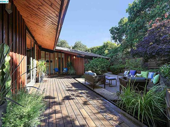 Designed in the 1957 by noted architect John Hans Otswalt, this spectacular property sits on a large lot in Berkeley's Claremont Hills. Meticulously rebuilt in 1995 using Otswalt's original plans, this International Style mid-century home is a beautiful melding of nature and design, utilizing warm wood tones and walls of windows to bring the outdoors inside. Thoughtfully landscaped for privacy, this house has seamless indoor/outdoor flow and takes advantage of the gorgeous bridge and Bay views. The great room features inviting views of the Golden Gate and Mount Tamalpais. An open floor plan follows a unique "boomerang" footprint, utilizing the best aspects of this exceptional site. This home has 3 bedrooms including a master suite, an office and 3 full baths. The adjacent lot at 0 Siler is also available for sale. If you've ever dreamed of owning a historic example of one of the East Bay's most noted architects, this is the chance of a lifetime.   FEATURES INCLUDE -Bridge and Bay views -Level-in entrance -Multiple outdoor spaces -3 bedrooms plus an office -3 full baths -Vaulted ceilings of warm wood, skylights and exposed beams -Master suite with 2 closets -Wraparound decks and serene patio -1+-car garage with interior access -Adjacent lot is also available for purchase