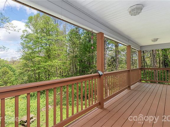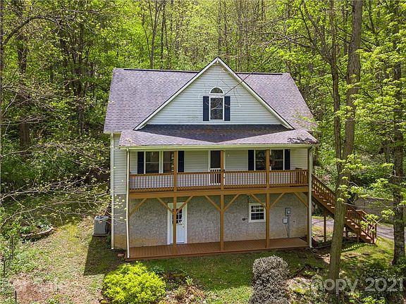 Privacy, trees, wildflowers, and cool breezes - all can be yours in this appealing Apple Creek Acres getaway. Sit on your covered front porch and look over an expanse of wildflowers - including Trillium, Solomon's Plume, Larkspur, Jack-in-the-Pulpit, and more. The home itself features wood floors, granite counters in the kitchen, a cozy Great Room with a stone fireplace, and a first floor Master Bedroom. The Master Bath features a spa tub, plus shower, and a huge walk-in closet. The upper level has two spacious guest rooms, with much extra storage. The lower level has a newly added Family Room with ceramic tile, plus an oversized two-car garage and more storage. Take a stroll on the path down to the rock garden and enjoy the natural bubbling springs and charming bridge. If you want to get away from it all, but still be within 10 minutes of Ingles, Publix, and Lake Junaluska - this is the place for you!