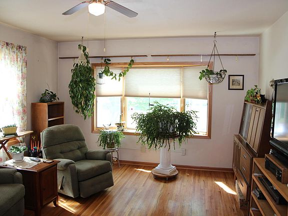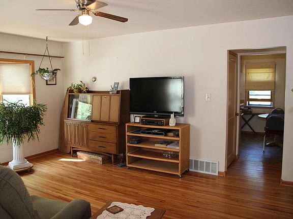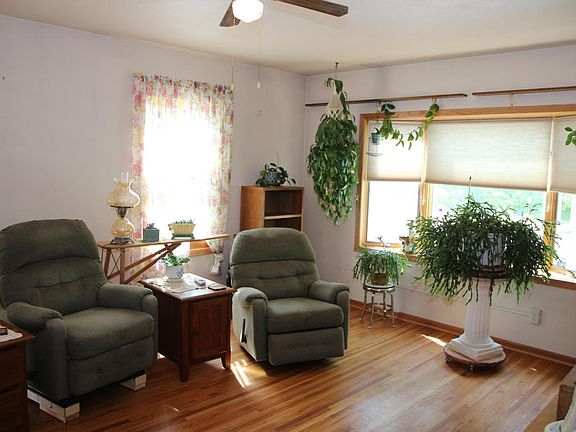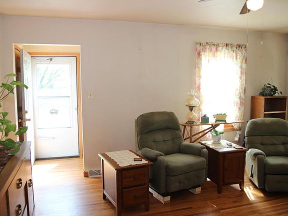 Look No More!! This 3 BR home has 2 bedrooms on the main floor and one large bedroom on the upper level. Large living room, plenty of cabinet space in the kitchen, hardwood floors, walk-in shower in main bathroom. Partially finished basement, oversized detached garage. Nice corner lot with lovely landscaping and apple, cherry trees for your enjoyment.