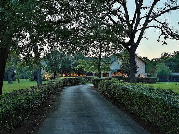 AMAZING English influenced stone estate nestled on 28+ acres of unrestricted property: private home, weekend retreat or event venue! Unique architectural details include cinderblock walls w/ Austin stone inside & outside. Through the historic 1800s solid wood & leaded glass front door is a breathtaking 2-story entry w/ stone walls, tin ceiling, wood tile flrs, wood stairs, wrought iron & crystal chandelier & wrought iron sconces. The Wow factor continues throughout the home w/ stone walls & huge wood beams in the formal living room, quiet theatre room, stunning Formal dining rm, private master bedrm, both w/ stone walls & fireplace. Kitchen w/ Thermador appliances, antique 1800s windows, bead board ceiling. The breakfast area & den feature beautiful wood accents w/ doors to the huge pavilion w/ outdoor kitchen & carriage house. Beautiful stone, hardwood floors, 6 fireplaces, tin ceilings, wood accents throughout. Addt\'l 1400 sq ft Carriage House. Read descriptions for more info.