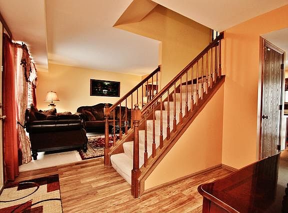 Super bright floor plan! Gorgeous brand new floors on Main Level! Foyer open to Living & Dining Rooms. Eat-in Kitchen w/oak cabs, stunning tile backsplash, stainless steel appls & slider to patio & fenced-in backyard. Huge FR w/vaulted ceil & brick fp. Master w/wic, addt'l bedrooms w/wall clsts & share Full Hall Bath w/dbl sinks & tub/shower combo. 34x23 Recreational Room w/neutral carpeting & so much storage!